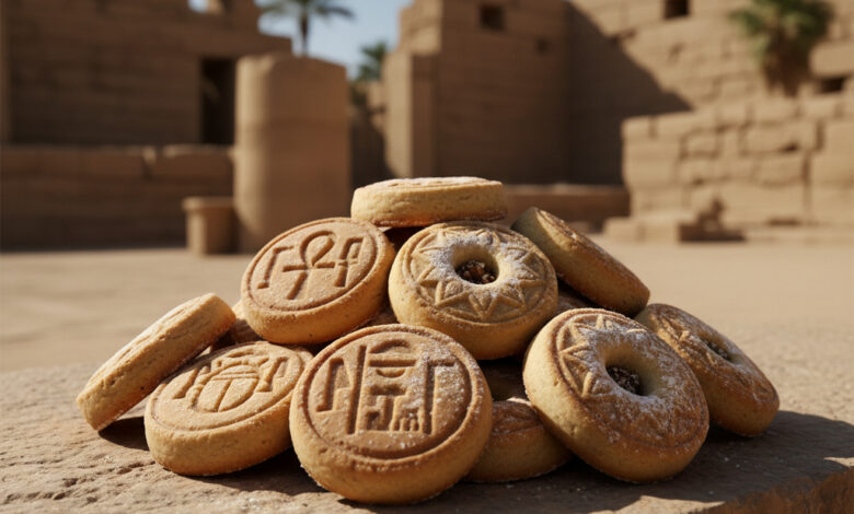 يعود أول ظهور موثق لكحك العيد إلى مصر الفرعونية، حيث كانت تقدم القرابين على شكل أقراص مستديرة من العجين للآلهة. كانت هذه الأقراص تُحفر عليها رموز وشعارات دينية، في طقس يعبر عن الشكر والطلب للبركة. لم تكن مجرد طعام، بل أداة طقسية مقدسة.